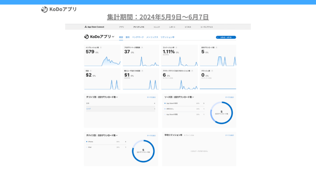 みなさまにKoDoアプリをご利用いただき、2024年6月度(今回は中間報告です)のダウンロード数が5を突破しました。